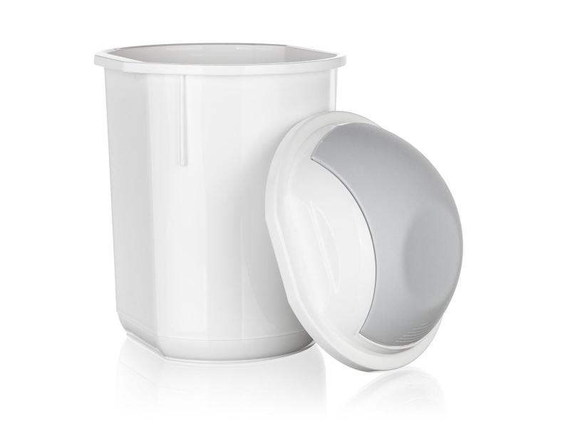 Koš odpadkový 4 l, v bílé barvě, s výklopným víkem, má jednoduchý a důmyslný zavírací mechanismus.8591022609620123