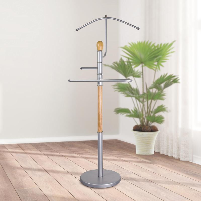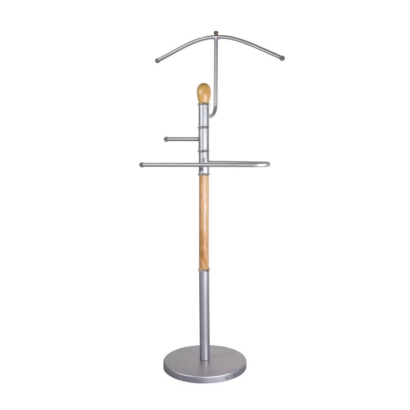Němý sluha v provedení chromu a dřeva je praktický pomocník na odkládání oděvu a nejrůznějšího oblečení.