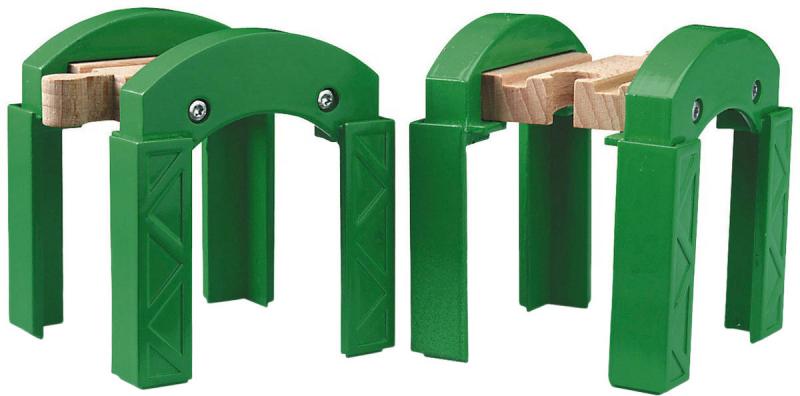 Systém pro navyšování mostů - 2ks podpěr ze dřeva a plastu jako náhradní díl k vláčkodráze. Baleno v krabici.Použij podpěry a udělej tunel. Také můžeš naskládat podpěry nad sebe a vytvořit novou, 2-úrovňovou dráhu.