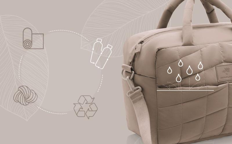 Vyrobena z 48 recyklovaných PET lahví, taška i podložka jsou