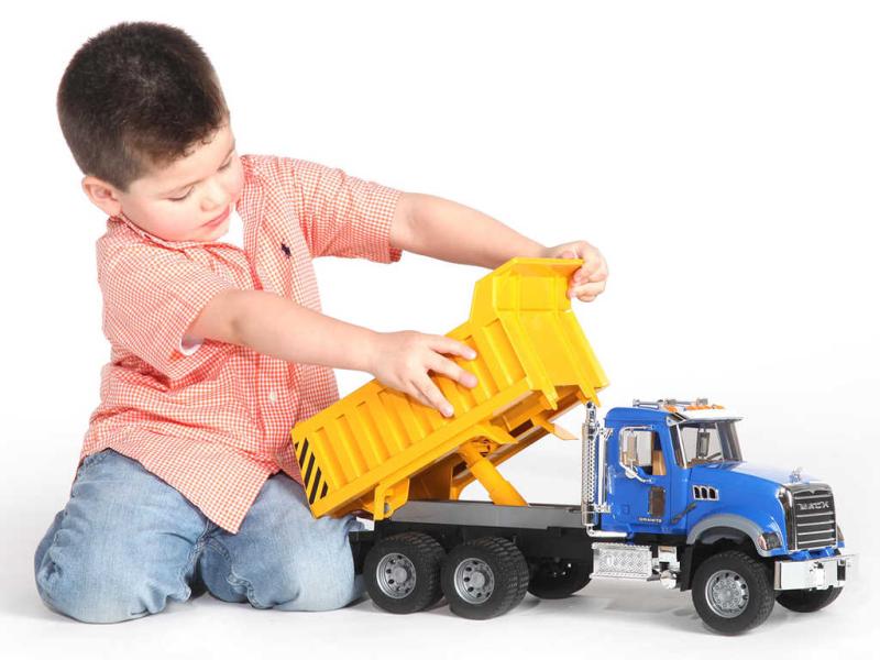 BRUDER 02815 - Nákladní auto MACK Granite Dump Truck.Tento model nákladního auta patří k našim nejoblíbenějším modelům. Vaše děti si s tímto vozem vyhrají především díky sklápěcí korbě, která je snadno ovladatelná hydraulikou. Modelu nechybí ani moderní