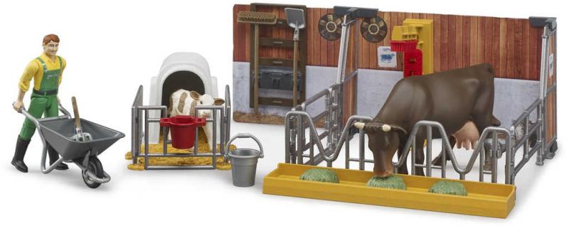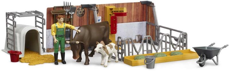 Bruder 62611 Stáj herní set farmář s krávou a teletem s doplňky