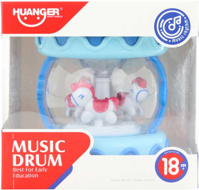 Modrý plastový buben s mnoha funkcemi. Bubínek hraje melodie, vydává zvuky zvířátek, hraje jako bubínek. Když bubínek hraje, tak svítí a koníci uvnitř se točí. Součástí je také ovládání hlasitosti. Hračka na