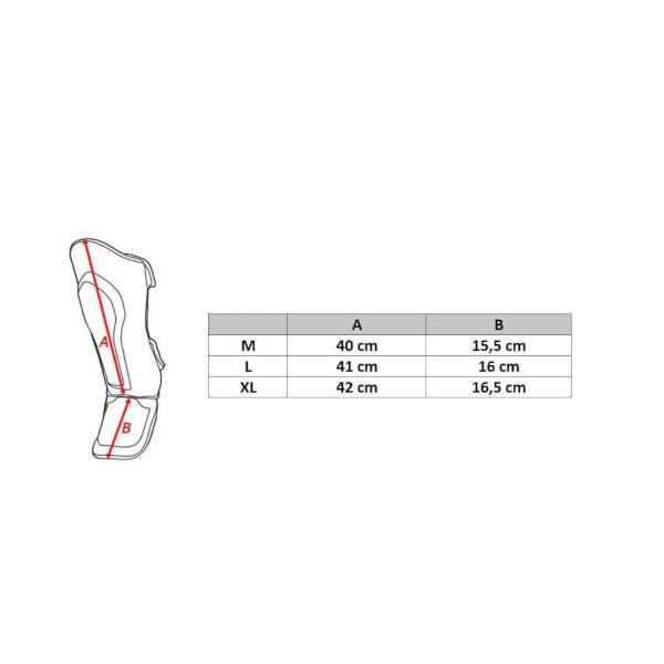 Výplní chráničů je tvrzená pěna, která skvěle tlumí údery a zaručuje uživateli každodenní bezproblémové využítí. Chránič dokonale kopíruje přirozený tvar holeně a nártu a navíc neomezuje v pohybu při nácviku technik a při sparingu.