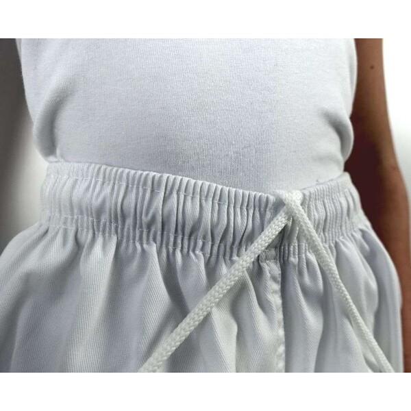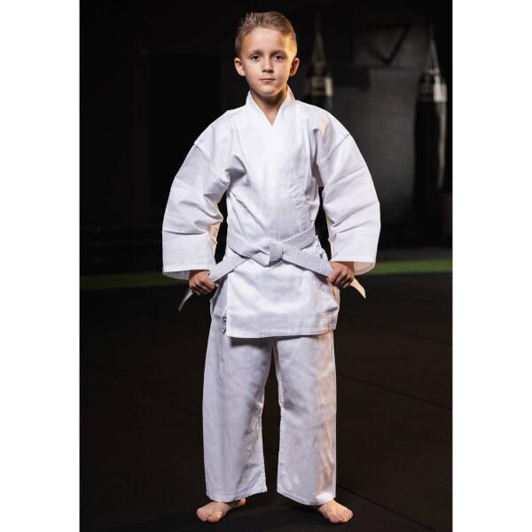 Ľahký, a zároveň odolný materiál (zmes polyesteru a bavlny, cca 200 g/m2) zabezpečuje voľnosť pohybu a vynikajúcu ventiláciu, vďaka čomu sa vaše dieťa môže plne sústrediť na tréning. Pohodlný strih, systém zosilnenia v rozkroku i na okrajoch a dvojitý systém upevnenia nohavíc (guma + šnúrka) sú zárukou, že odev vydrží každý tréning a bude slúžiť dlhú dobu.