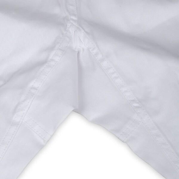 Lehký, a zároveň odolný materiál (směs polyesteru a bavlny, cca 200 g/m2) zajišťuje volnost pohybu a vynikající ventilaci, díky čemuž se vaše dítě může plně soustředit na trénink. Pohodlný střih, systém zesílení v rozkroku i na okrajích a dvojitý systém upevnění kalhot (guma + šňůrka) jsou zárukou, že oděv vydrží každý trénink a bude sloužit dlouhou dobu.