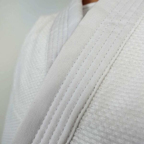 Propracovaný strih kimona neobmedzuje pohyb. DBX-J-1 je vyrobené z bavlneného úpletu o gramáži 350 g/m2 v úprave Pearl Weave, v tomto úplete sú špeciálne slučky, ktoré zvyšujú pevnosť materiálu v ťahu vo všetkých smeroch. Lemovanie je zosilnené a má viacnásobné prešitie. Kimono tak je veľmi odolné proti roztrhnutiu.