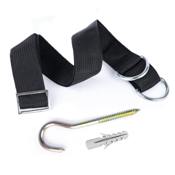Sada KIDS60.2 obsahuje popruh s prackou. Umožňuje zavesiť vretenec v optimálnej výške vzhľadom na výšku dieťaťa. Správne zavesenie vretenca je dôležité pre pohodlie, ale predovšetkým pre techniku úderov a prevenciu zranení. Popruh je nastaviteľný na dĺžku až 100 cm. V sade tiež nájdete stropný háčik na zavesenie vretenca.
