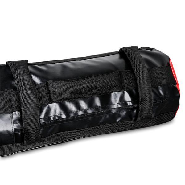 Sandbag DBX BUSHIDO 5-35 kg je výborný díky své regulaci váhy. Sand bag se dodává prázdný a tuto vlastnost určitě ocení uživatel, který chce třeba cvičit na dovolené. V sestavě je dodáván i s třemi vysoce odolnými vaky, které lze naplnit až do hmostnosti 12 kg. Ideální náplní je písek nebo jemný štěrk. Sandbag Bushido je osazen 7 úchopy které jsou vyplněné materiálem odolným proti zlomení. Každý úchop je přešitý extrémně pevným nylonovým popruhem o síle tahu až 300 kg!