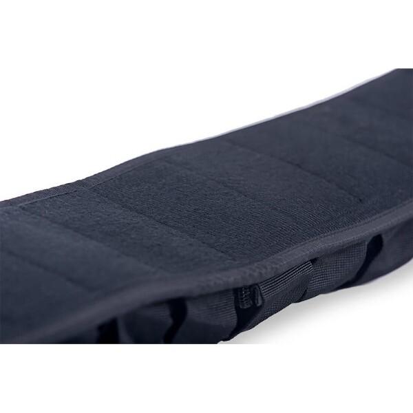 Zapínanie je riešené robustnou, plastovou sponou, ktorá umožňuje rýchle nasadenie, alebo zloženie pásu. Pre reguláciu dĺžky pásu je na každej strane popruh so suchým zipsom. Vnútorná strana je vyvedená z na dotyk príjemného materiálu, ktorý zabraňuje zosúvaniu pásu počas tréningu.