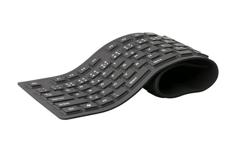 • Ohebná antibakteriální, prachuvzdorná a voděvzdorná klávesnice se skvělým využitím v lékařství, potrávinářství nebo průmyslu. Klávesnice má standardná český layout o 109 kláves s velkým enterem a numerickou částí.
