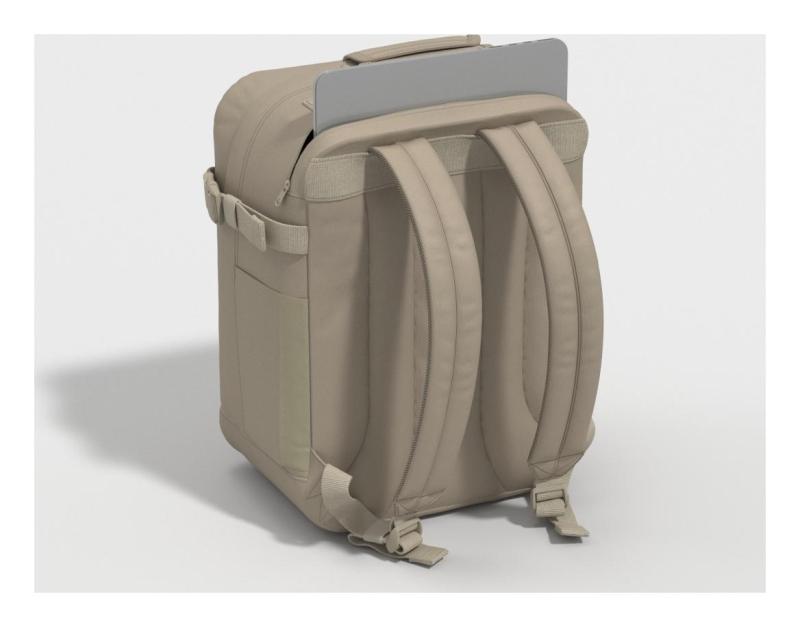 Palubní batoh pro nízkonákladové cestování vybavený polstrovanou přihrádkou na notebook.