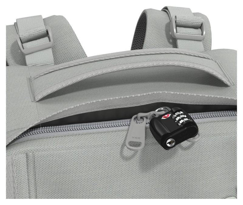 Hlavná komora má široký vstup na zips s možnosťou uzamknutia visiacim zámkom, čo zvyšuje bezpečnosť vašich vecí. Pre lepšiu organizáciu slúži predné vrecko na drobnosti, vnútorné zipsové vrecko a sieťované vrecko na zips. Praktické je tiež rozopínacie bočné vrecko na fľašu o priemere 7 cm. Vrecko na notebook je polstrované a má zvýšené dno, takže sa obsah nedotýka spodnej časti batohu, čo zabezpečuje lepšiu ochranu zariadenia.