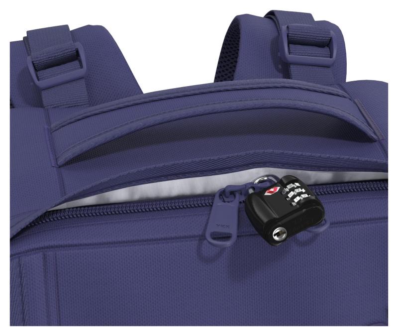 hlavní komora se širokým vstupem na zip s jezdci, které lze uzamknout visacím zámkem