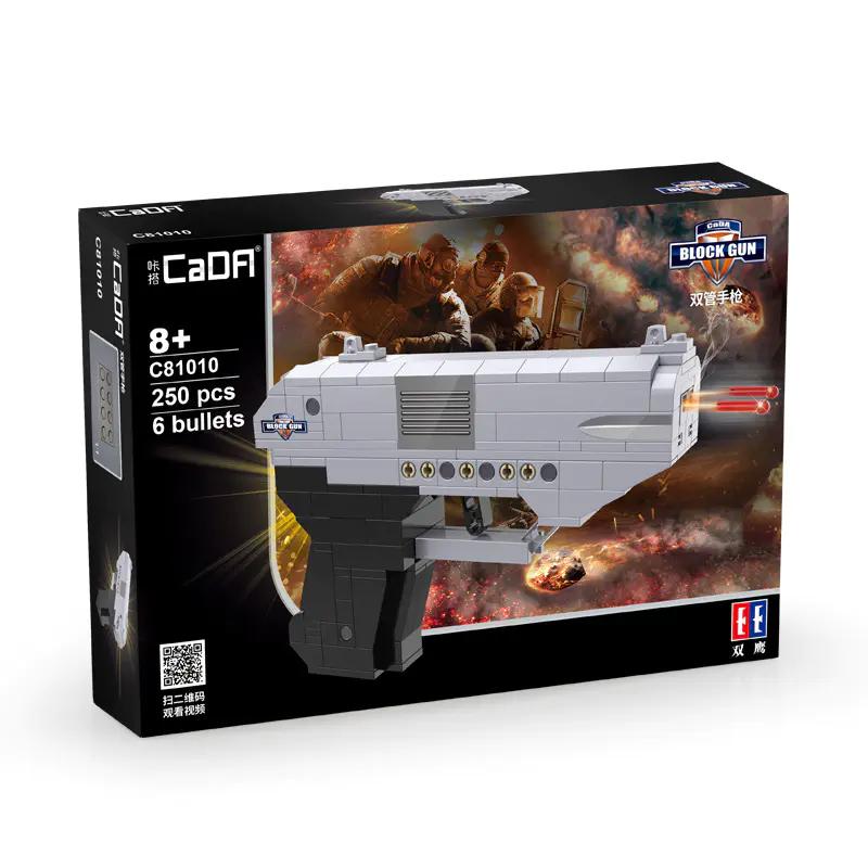CaDA stavebnice dvouhlavňová pistole 250 dílků, střílí plastové tyčinky