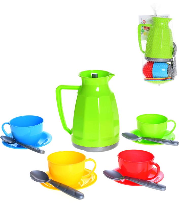 Barevné dětské nádobí čajový / kávový servis z lehkého plastu, pro všechny malé kuchařky a hospodyňky. Vhodné i pro nejmenší děti. Baleno v síťce.Každá malá holčička potřebuje mít ve své dětské kuchyňce nádobí, aby mohla uvařit čaj i kávu pro své kamarádky.