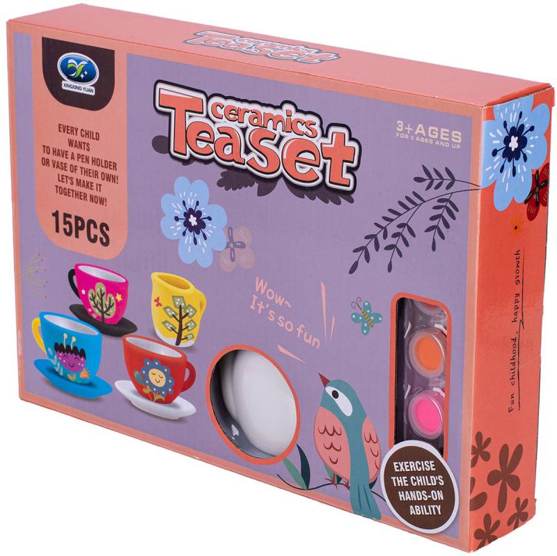 Čajový servis dětský kreativní set s barvičkami malování na porcelán