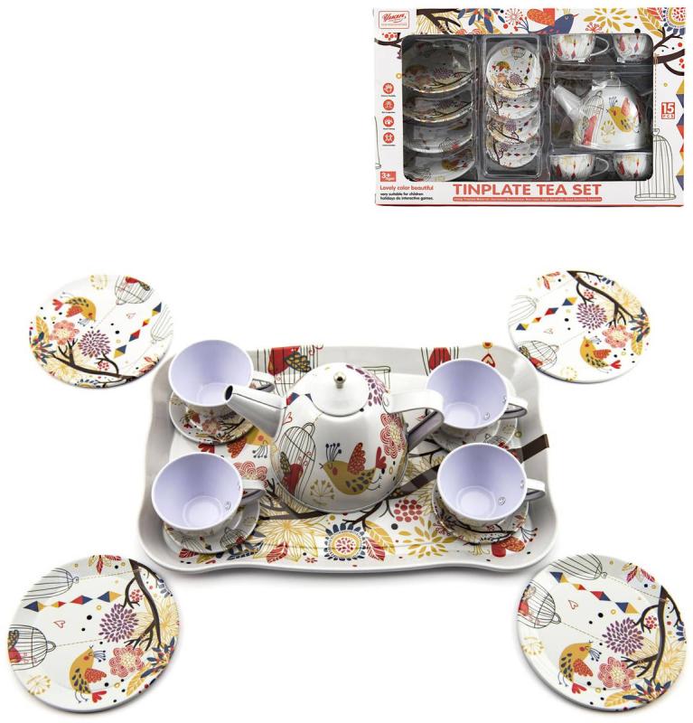Čajový servis plechový dětské nádobíčko set 15ks v krabici