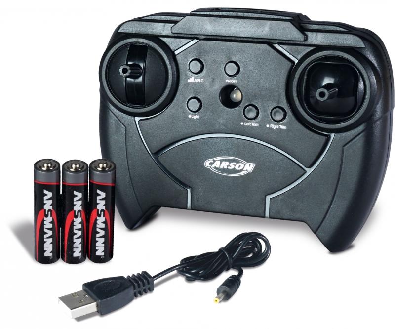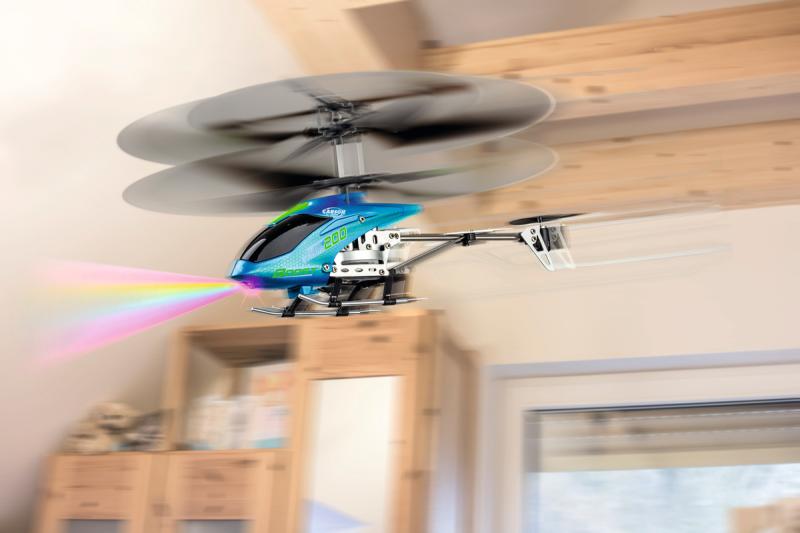 Easy Tyrann 200 Boost od CARSON je "zábavný vrtuľník" pre začiatočníkov so špeciálnymi funkciami. Model je vybavený funkciou posilňovača, ktorá poskytuje väčší výkon. Navyše disponuje LED diódou, takže vrtuľník vyzerá naozaj skvele. Jednoduchá manipulácia – elektronický letový stabilizátor (gyroskop) robí vrtuľník bezpečným a ľahko ovládateľným. Kovový podvozok a chvostový výložník poskytujú potrebnú stabilitu. Vysielač tiež obsahuje nabíjaciu jednotku, ktorá vám umožní nabíjať malý vrtuľník kdekoľvek bez sieťového napätia. Žasnite so svojím CARSON Easy Tyrann 200 Boost!
