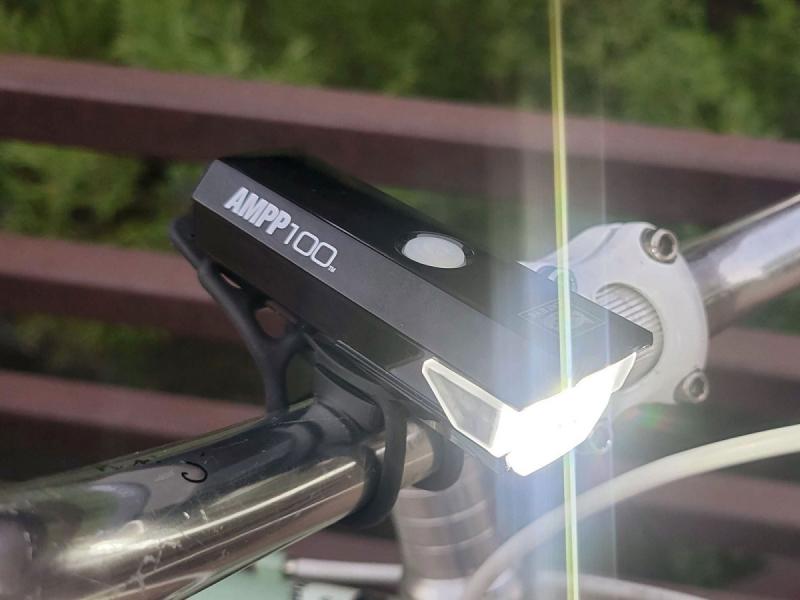 Cateye AMPP100 predstavuje predné dobíjacie svetlo vybavené technológiou OptiCube, ktorá vďaka špeciálnej konštrukcii optických šošoviek efektívne usmerňuje tok svetla a zabezpečuje tak lepšie osvetlenie vozovky. Súčasťou je indikátor kapacity akumulátora a stavu dobíjania integrovaný priamo vo vypínači, čo umožňuje jednoduchú kontrolu stavu batérie počas jazdy.
