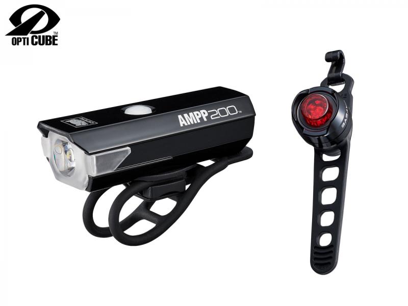 Predné svetlo AMPP200 je dobíjacie a disponuje výkonom 200 lumenov, ktorý zabezpečuje dostatočné osvetlenie vozovky. Vďaka technológii OptiCube, špeciálne navrhnutým šošovkám, je svetelný lúč efektívne usmernený a pokrýva širšiu oblasť pred bicyklom. Integrovaný indikátor kapacity akumulátora a nabíjania je umiestnený priamo vo vypínači, čo uľahčuje kontrolu stavu batérie. Výdrž svetla sa pohybuje od 1,5 do 13 hodín v závislosti od zvoleného režimu svietenia, pričom blikanie vydrží až 30 hodín. Súčasťou balenia je USB 2.0 / Micro-B kábel pre pohodlné dobíjanie.