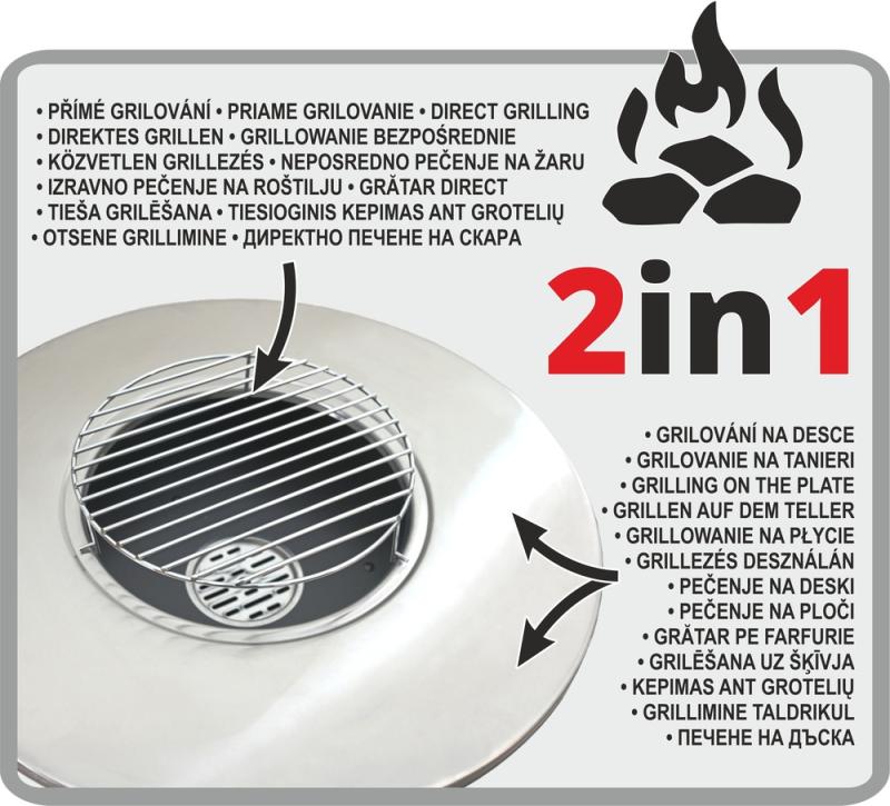Pro tepelnou přípravu Vašich pochutin je gril opatřen roštem z chromované oceli o průměru 28 cm ve výšce 83 cm, použít lze i obvodová grilovací deska z nerezové oceli SS430 o průměru 58,5 cm ve výšce 79 cm. Materiál SS430 desce zajišťuje rovnoměrné a rychlé zahřívání.