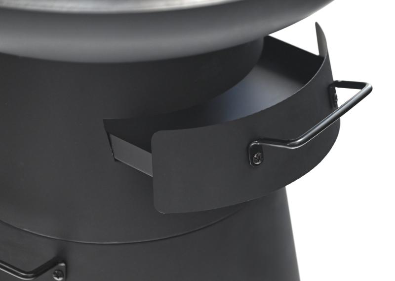 Po sejmutí roštu lze gril snadno naplnit uhlím, dno grilovacího prostoru je opatřeno sítkem kudy se popel dostává do výsuvného popelníku. Spodní část grilu je rovněž opatřena odkládacím prostorem.