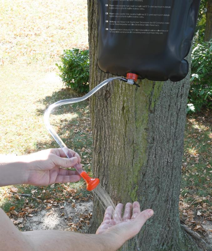 Kempingová sprcha s objemem 20l vhodná pro k zavěšení na strom, v kempu a na jiných místech.Zhotovení z odolného PVC černé barvy s vnějšími rozměry naplněného vaku 60 x 40 x 16 cm. Vak je navržen tak aby se po zavěšení na slunném místě voda ohřála pro příjemné osprchování.