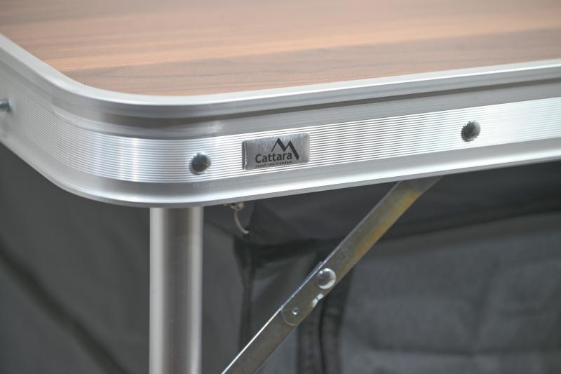 Lehká hliníková konstrukce zajišťuje stabilitu a zároveň snadnou manipulaci. Deska stolu je odolná a opatřená dekorativním povrchem, který usnadňuje údržbu a zvyšuje odolnost proti poškození. Stabilní provedení garantuje spolehlivost i při pravidelném používání.