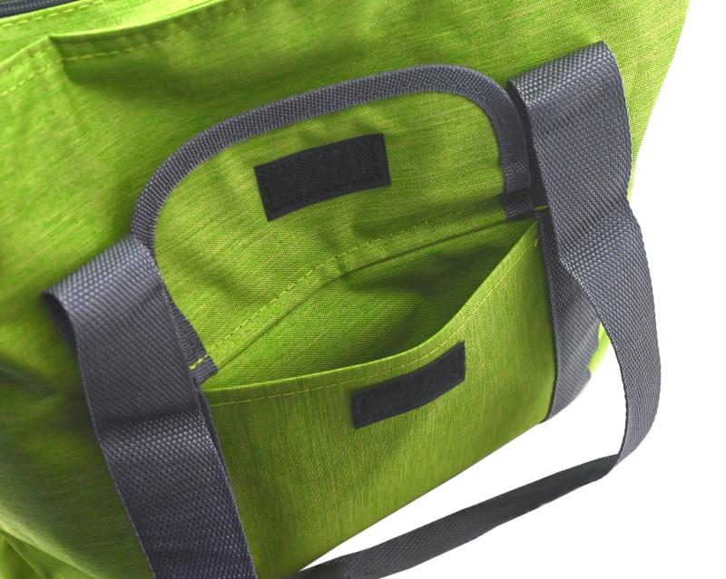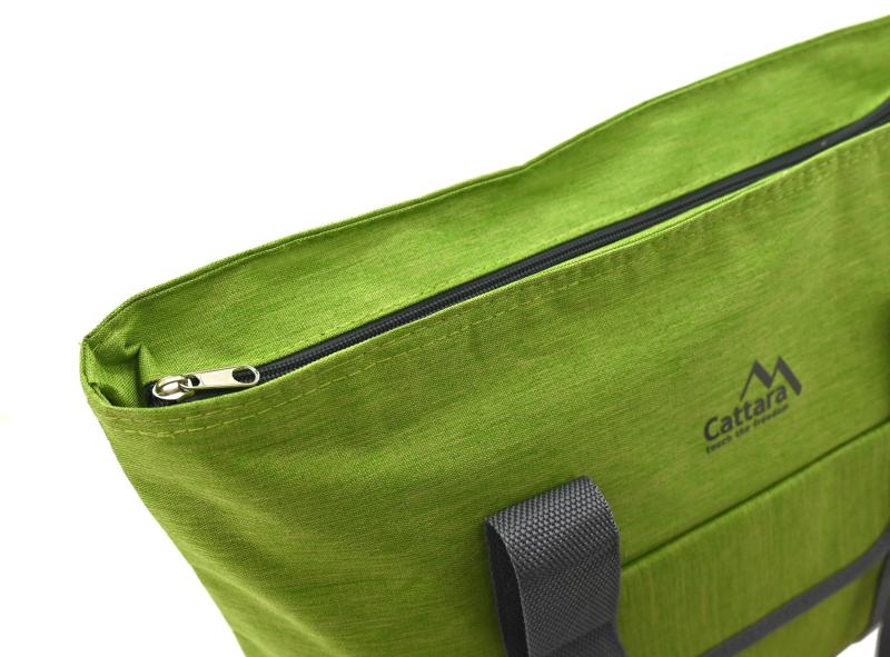 Vyrobena je z odolného polyesteru s nízkou hmotností 210 g, v zeleném provedení vhodném do přírody. Pro pohodlné přenášení je taška doplněna širokým popruhem šedé barvy.