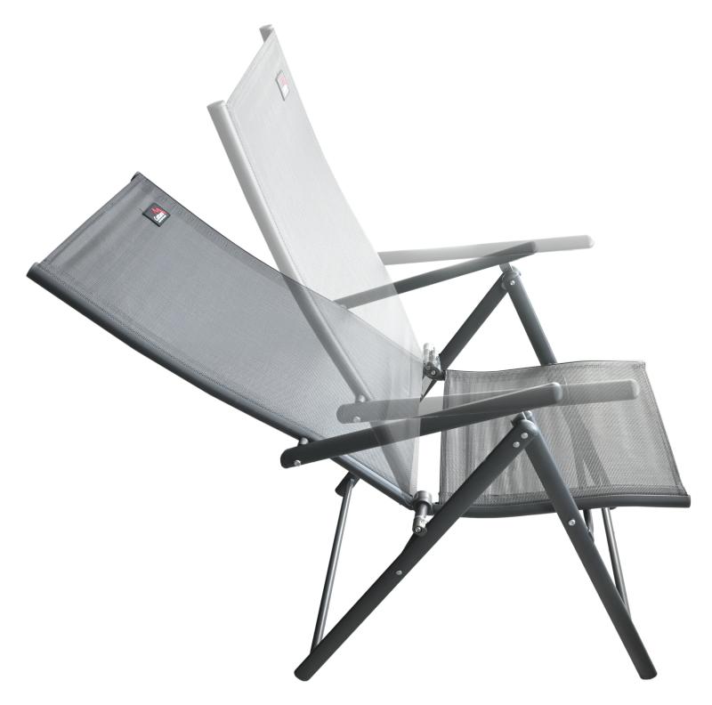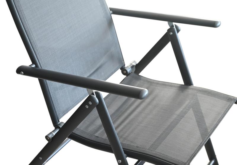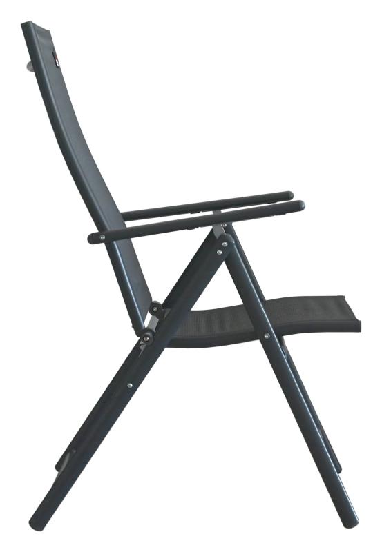 Zahradní židle Pula je moderní, skládací židle s nastavitelným sklonem zádové opěrky.