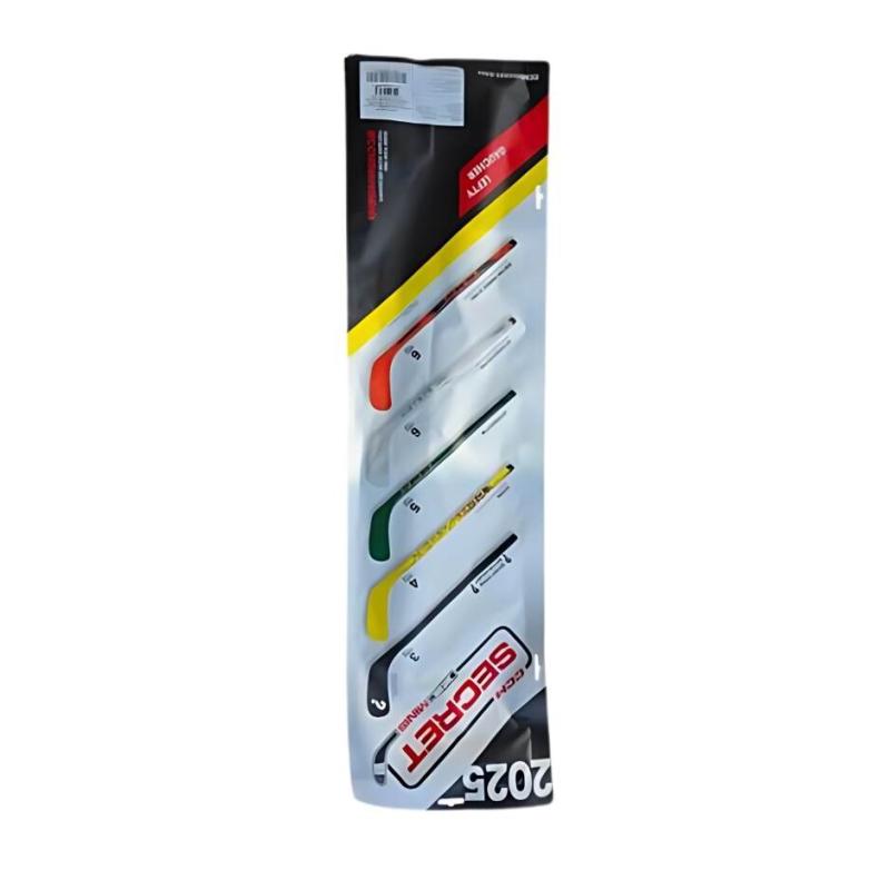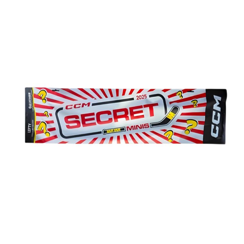 Mini hokejka s překvapivým designem z kolekce CCM Secret Minis, délka 24 cm, ideální pro sběratele i fanoušky hokeje všech věkových kategorií.Tato mini hokejka představuje zajímavý sběratelský předmět, který potěší každého fanouška hokeje. Každý kus z řady CCM Secret Minis je zabalen v neprůhledném plastovém sáčku, takže design zůstává tajemstvím až do rozbalení. Délka hokejky je 24 cm, což ji činí vhodnou jako dekoraci, suvenýr nebo dárek.