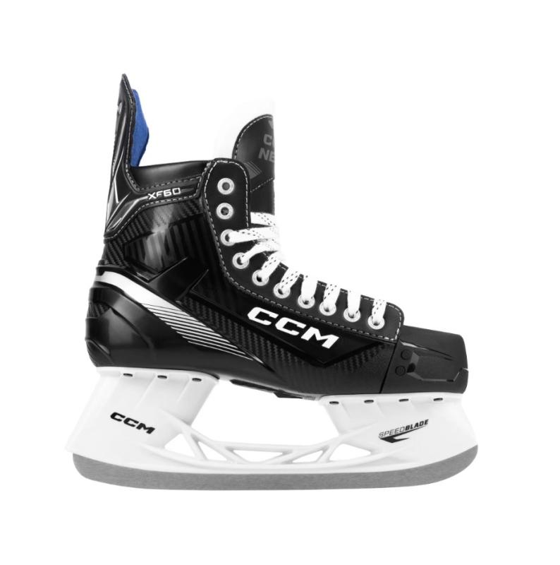 CCM Tacks XF 60 sú hokejové korčule pre amatérskych hokejistov.Korčule pre hobby hokejistov ponúkajú základnú ochranu pred strelením pukom. Ak chodíš na ľad aspoň raz týždenne, neuvážaj nad lacnejšími variantmi. Korčule lepšie prenesú energiu a tvoje nohy to ocenia.