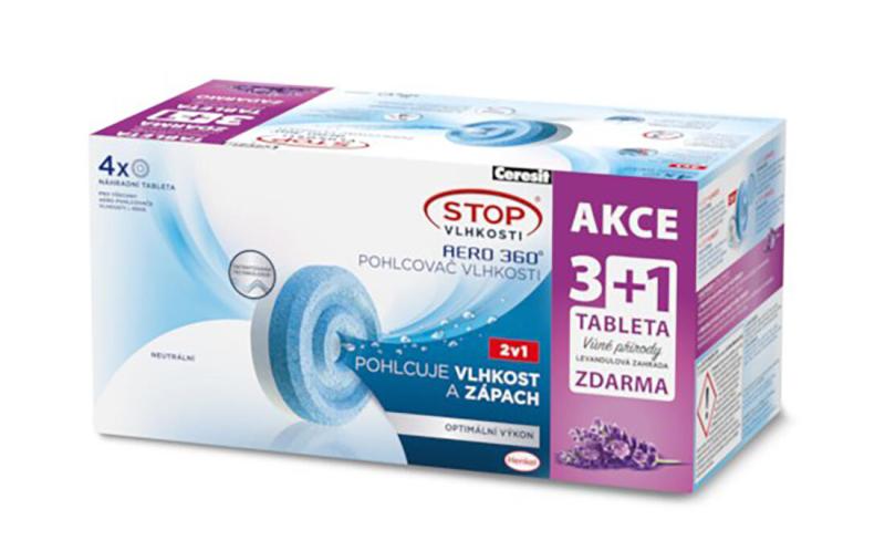 CERESIT Náplň do pohlcovače vlhkosti CSV-AERO 360, 4x450g tableta, levandule