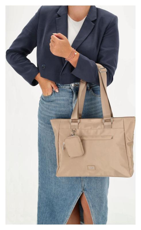 Dámska kabelka je navrhnutá s dôrazom na praktickosť aj vzhľad. Odnímateľné vrecko na prednej strane umožňuje bezpečne uložiť kľúče, mince alebo iné drobnosti, ktoré chcete mať vždy po ruke. Vďaka tomu už nemusíte strácať čas hľadaním v hĺbkach tašky. Materiál z nylonu a polyesteru je ľahký, odolný a ľahko sa udržiava, čo zaručuje pohodlné nosenie aj dlhú životnosť produktu. Minimalistický dizajn v decentnom béžovom odtieni Light taupe sa ľahko kombinuje s rôznymi outfitmi.