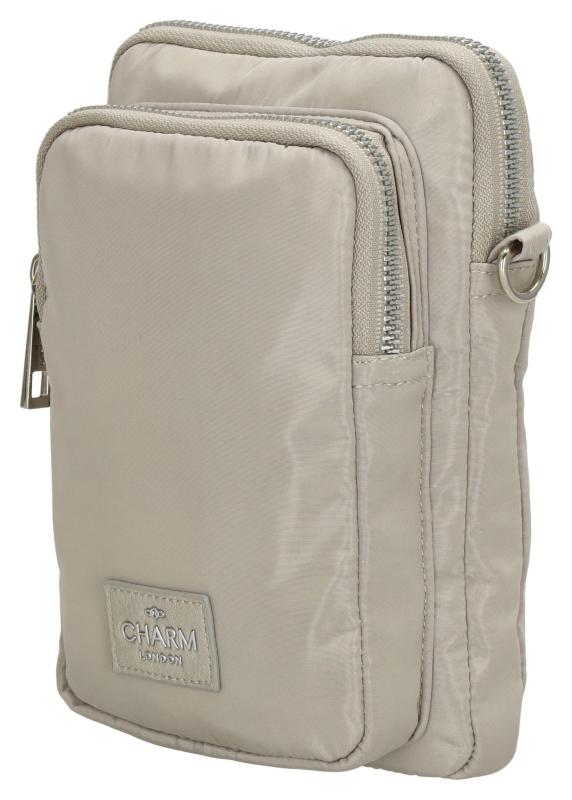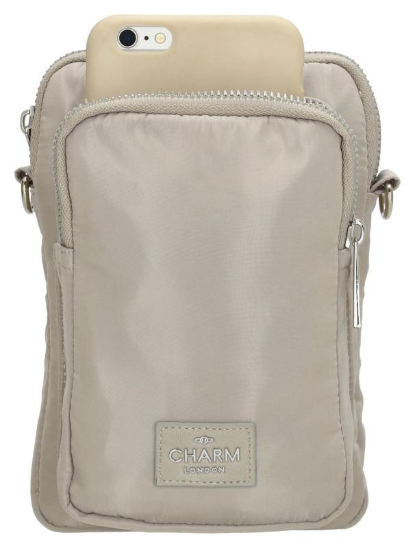 Toto vodoodolné puzdro na telefón Charm London Odeon v farbe Light grey ponúka predné, hlavné a zadné vrecko na zips. Má odnímateľný a nastaviteľný ramenný popruh.