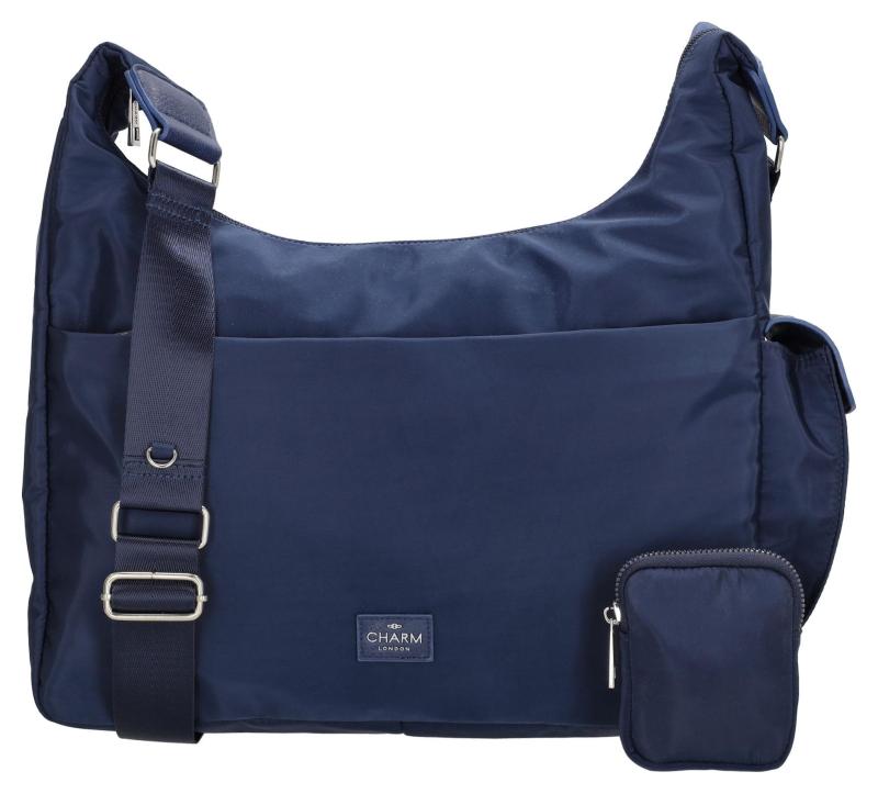Veľká modrá taška cez rameno je vyrobená z vodoodolného nylonového a polyesterového materiálu, ktorý ochráni vaše veci aj pri nepriaznivom počasí. Vďaka premyslenému usporiadaniu ponúka celkom päť vreciek na zips – predné, zadné a dve vnútorné, takže všetko budete mať prehľadne usporiadané a ľahko dostupné. Už nebudete musieť zdĺhavo hľadať kľúče alebo telefón v hlavnom priestore.