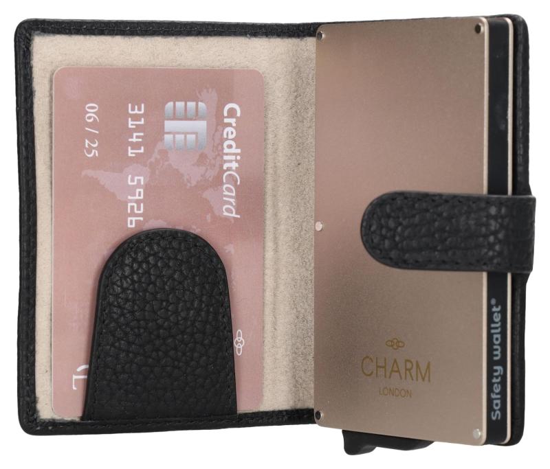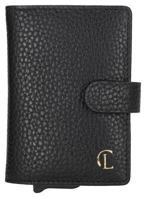 Elegantné čierne kožené puzdro ponúka bezpečné a prehľadné uloženie platobných kariet i drobných mincí vďaka integrované RFID ochrane a praktickej kapsičke na zips.