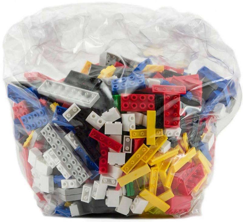 Koš plný kostek v této verzi obsahuje 70-80% standardních základních kostek. Plastový koš obsahuje jeden sáček se 2kg základních kostiček a základen a doplňků. Jsou volně nasypané v přibližném počtu - od každého druhu něco. Proto se každý koš trochu liší. Každý koš je "originál". Celkem zde najdete 360-400 kostiček, ale nejsou tu kolečka pro stavbu autíček ani figurky.