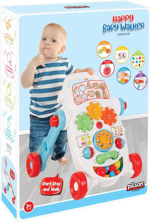 Interaktivní plastové chodítko v modré barvě, se spoustou aktivit, které učí děti rozpoznávat barvy, zvuky a tvary a podpoří jej při prvních pokusech o chůzi. Součástí chodítka je 10 různých chrastítek, 10 různých otočných míčků, hudební box nebo vkládačka. Velmi stabilní konstrukce. Splňuje nejpřísnější normy EU. Vyrobeno ze zdravotně nezávadného materiálu.