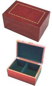 Drevený box o rozmere 21,5 x 13,5 x 10,5cm zdobený intarziou vo vysokom lesku.