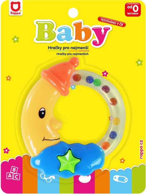Dodání produktu Chrastítko baby měsíček pro miminko na kartě 4 barvy plast