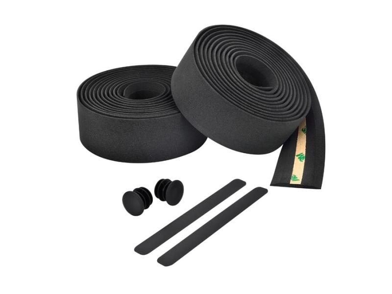 Gelový pás se stará o protiskluzovost, EVA pěna tlumí vibrace a semišový povrch je příjemný na dotek a zajišťujě bezpečný úchop. Tloušťka omotávky je 2,5 mm, délka 2 metry a v balení jsou lock in zátky do řídítek a zakončovací pásky.