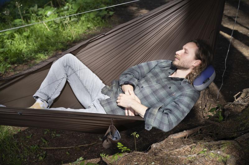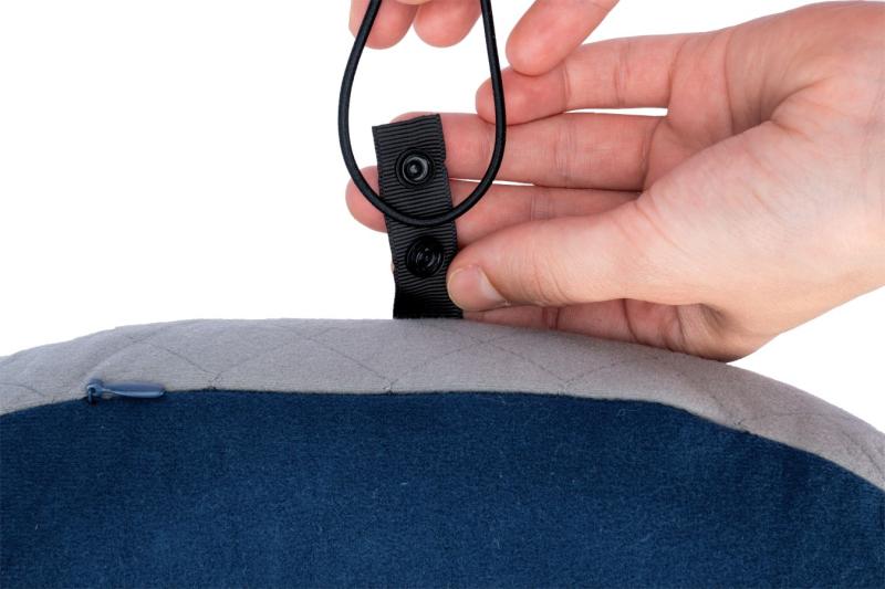 -odnímatelná závěsná sada se dvěma elastickými šňůrami a karabinou pro zajištění polštáře v houpací síti