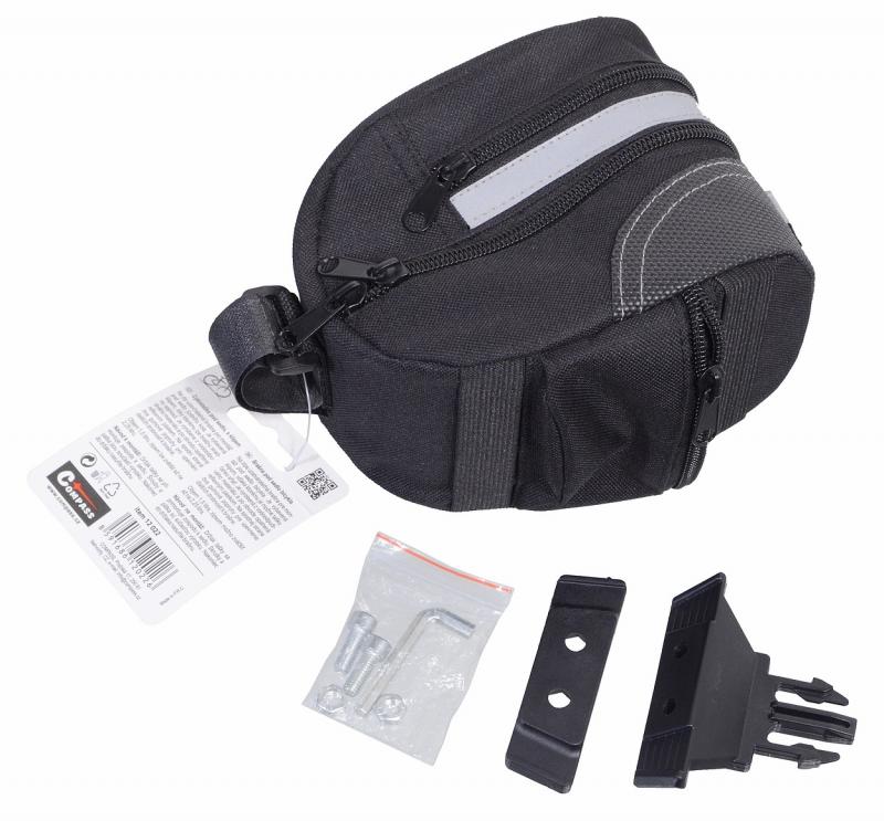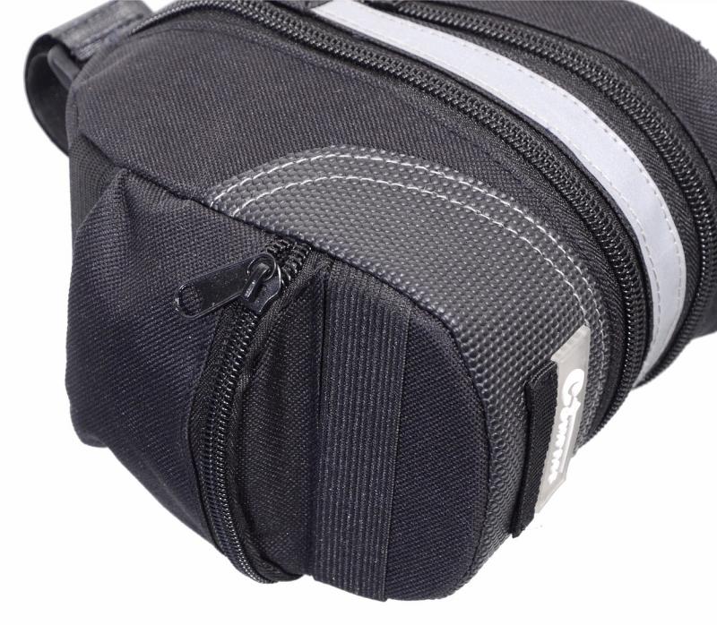 Na zips uzatvárateľná taška na montáž pod sedlo bicykla. Je vybavená klipom, vďaka ktorému je možné tašku jednoducho zložiť. Je vyrobená z vodoodpudivého materiálu a po obvode opatrená reflexným pásikom. Na spodnej strane dva gumové popruhy na upevnenie ďalších drobností k taške.Vnútorný objem cca 1,5 litra, zipsom je možné zväčšiť až na 2,25 litra.