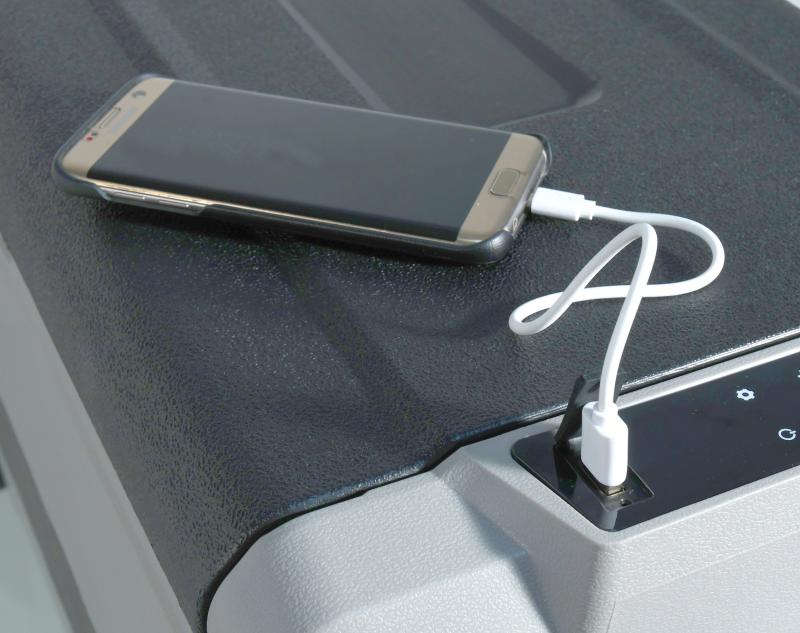 Vnější plášť je proveden z odolného plastu šedé barvy, který spolu s perfektní PU izolací zajišťuje dlouhodobé zachování stabilní teploty uvnitř boxu a zaručuje velmi nízkou spotřebu energie. Okraj ovládacího panelu je doplněn o krytou USB zásuvku pro napájení zařízení s USB konektorem.