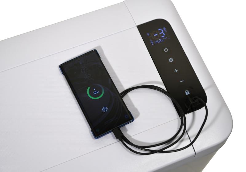 Vnější plášť je proveden z kvalitně lakovaného hliníku stříbrné barvy, který spolu s perfektní PU izolací zajišťuje dlouhodobé zachování stabilní teploty uvnitř boxu a zaručuje velmi nízkou spotřebu energie. Díky postranním madlům je zajištěno komfortní přenášení. Okraj ovládacího panelu je doplněn o krytou USB zásuvku pro napájení zařízení s USB konektorem.