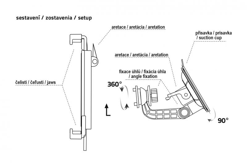 Držák pro tablet s velmi silnou přísavkou. Ideální k připevnění na stůl, na sklo či na rovný neporézní povrch. Rozsah úchytu 11,5 - 25 cm umožňuje upevnění tabletů 7" - 10,1".