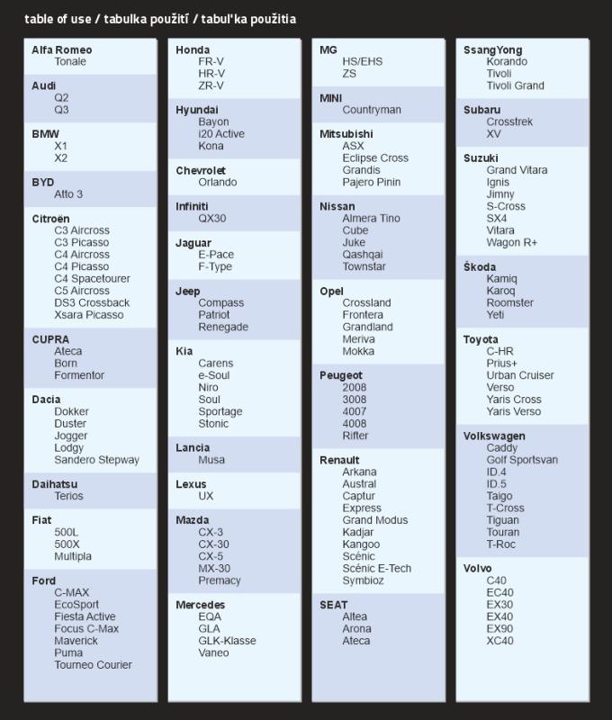 Citroën | C3 Aircross, C3 Picasso, C4 Aircross, C4 Picasso, C4 Spacetourer, C5 Aircross, DS3 Crossback, Xsara Picasso |
