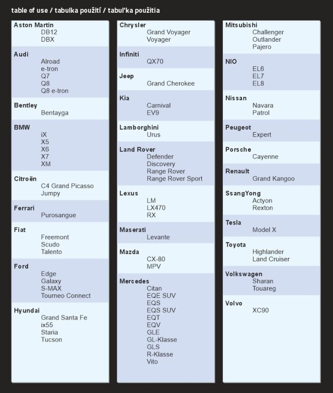 velikost SUV-VAN - vhodné pro vozy: | |